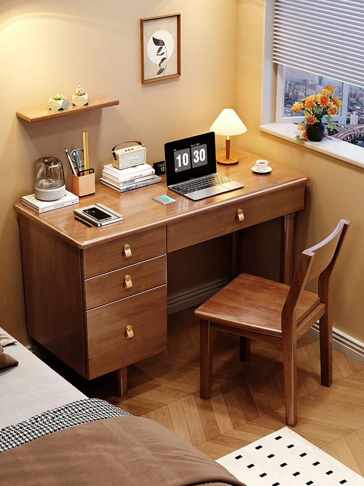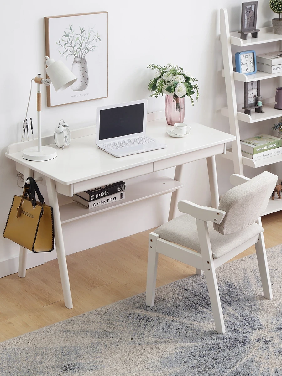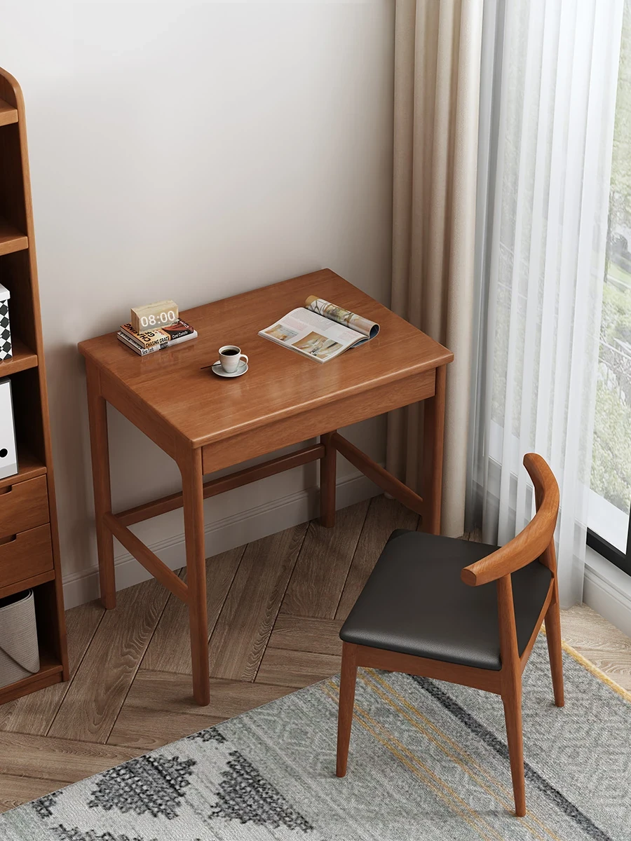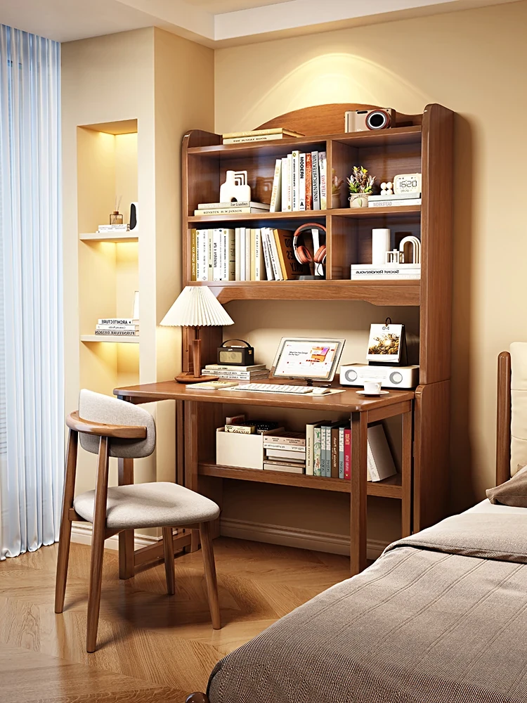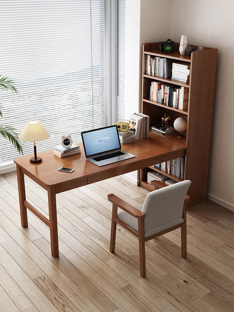 Nordic Solid Wood Desk - Modern Minimalist Study & Computer Table Set for Small Spaces, Featuring Bookshelf and Multifunctional Design for Home Bedrooms