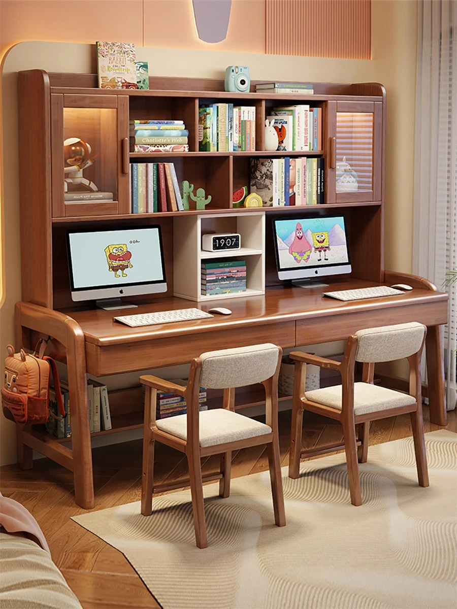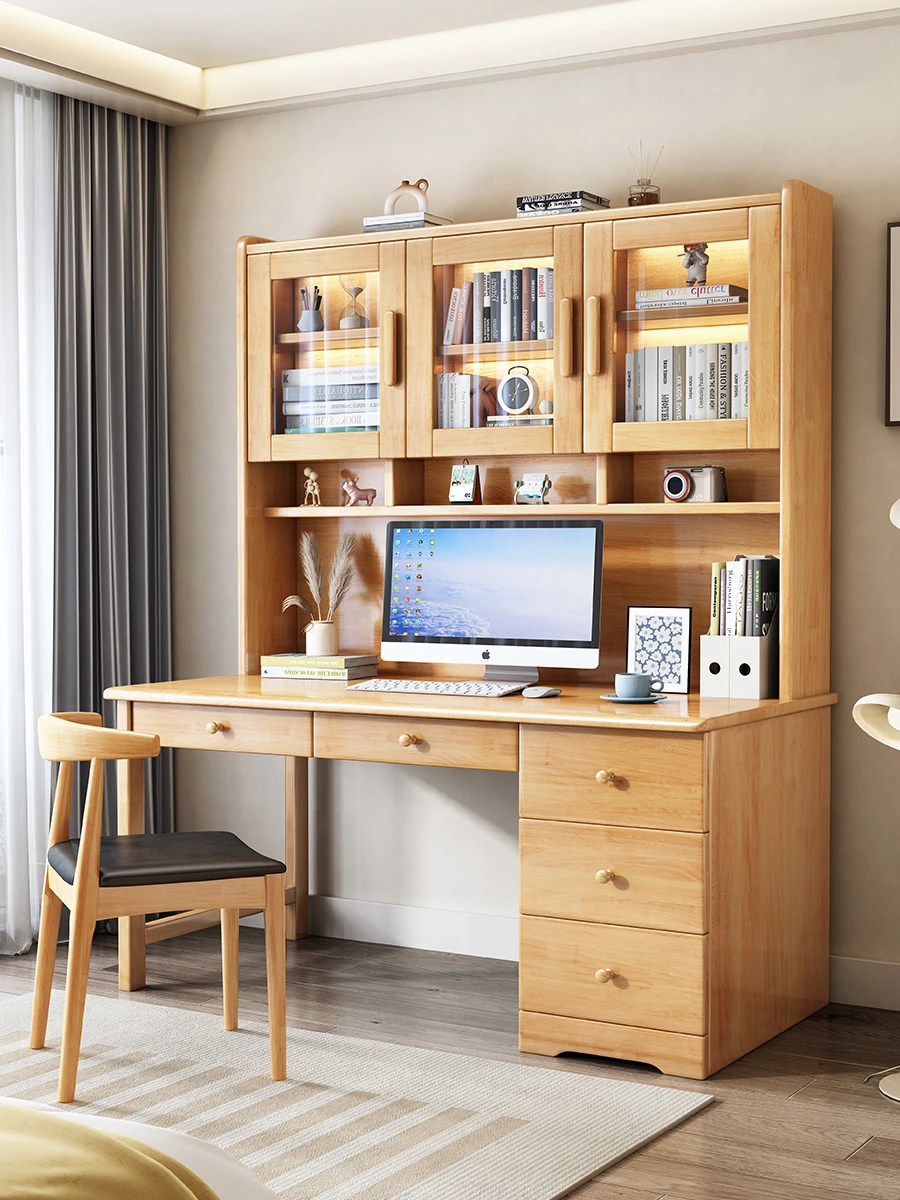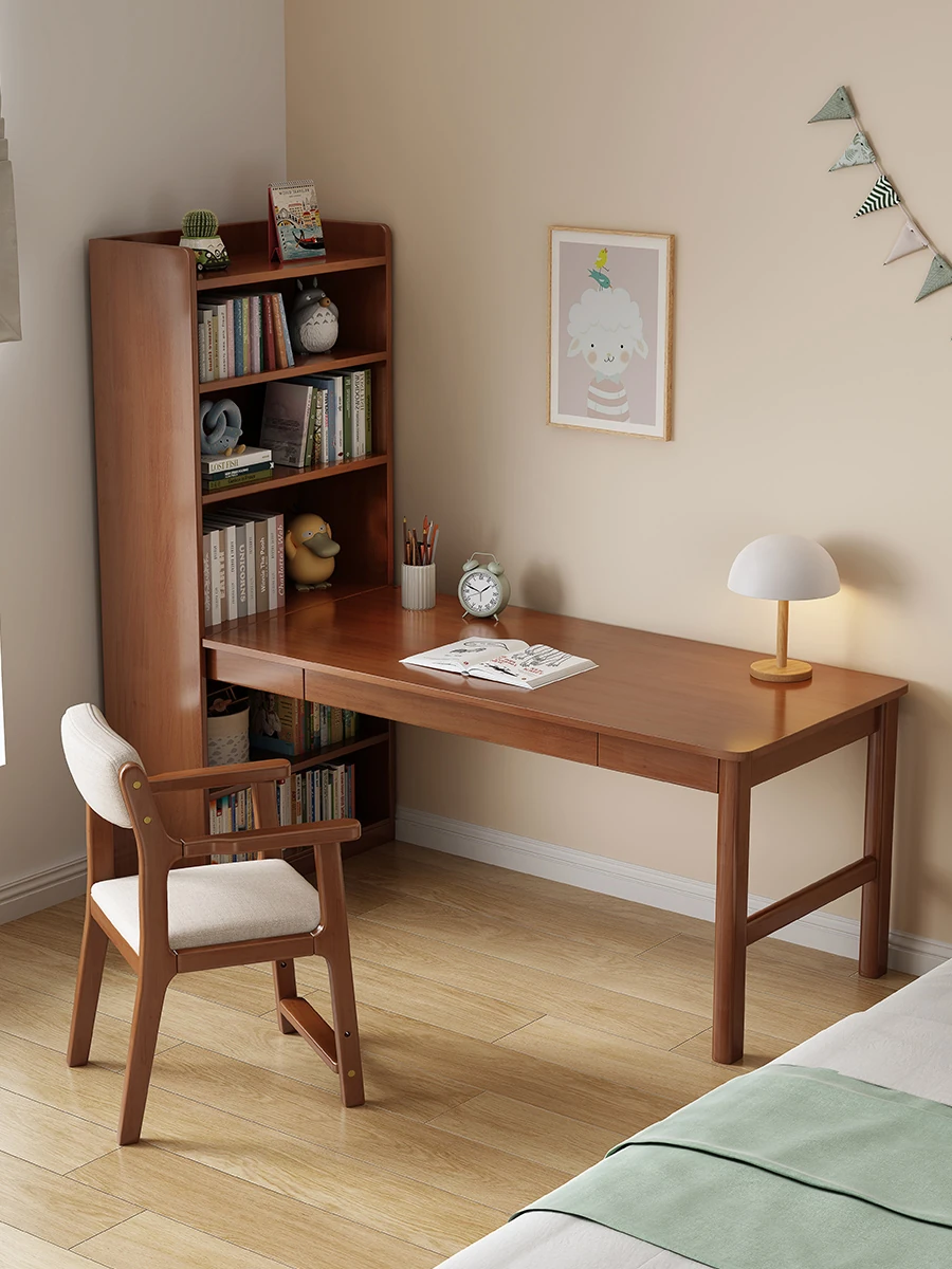 Solid Wood Study Desk: Versatile All-in-One Bedroom & Home Office Furniture with Bookshelf and Storage Cabinet for Enhanced Learning and Productivity