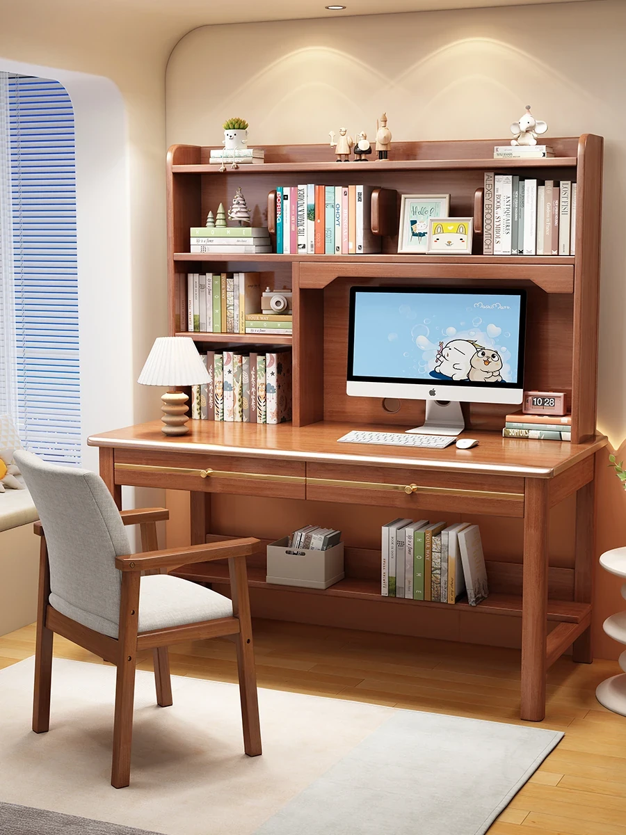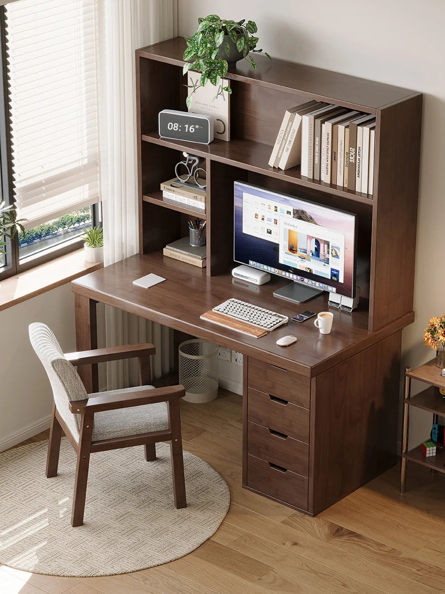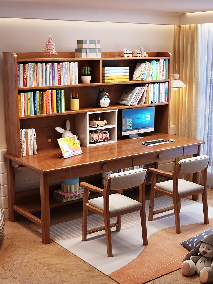 Solid Wood Study Desk: Versatile All-in-One Bedroom & Home Office Furniture with Bookshelf and Storage Cabinet for Enhanced Learning and Productivity