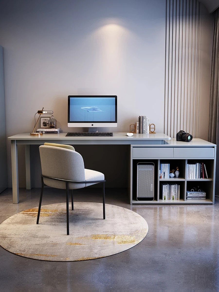 Modern Solid Wood Corner Computer Desk with Integrated Bookshelf - Stylish Minimalist Design for Home Office or Bedroom, Perfect for Dual Workstations