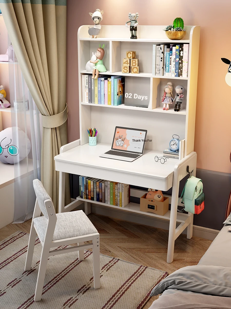 Multifunctional Solid Wood Children's Desk and Bookshelf - Modern Minimalist Study Table for Home and Office, Perfect for Middle School Students & Computer Work, Space-Saving Design