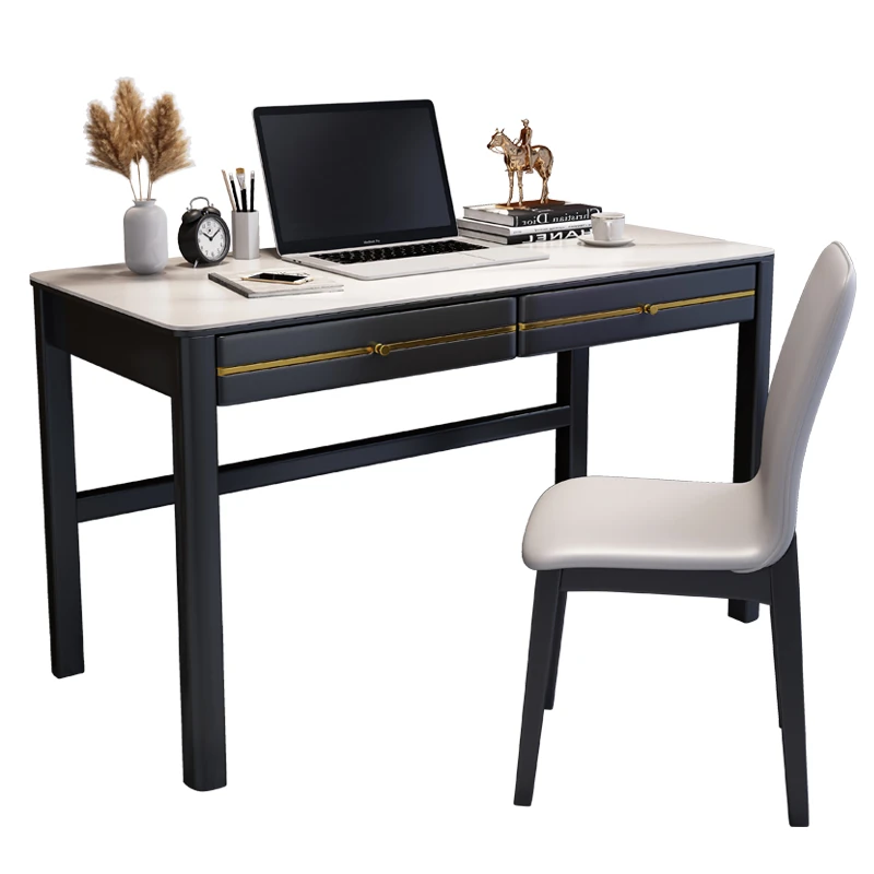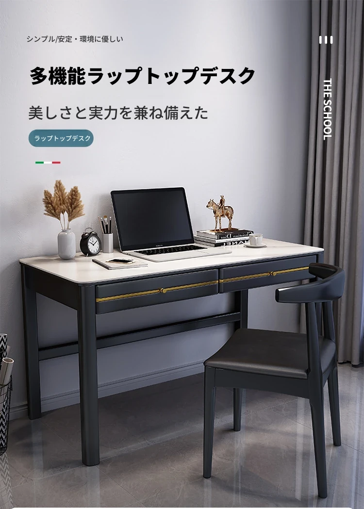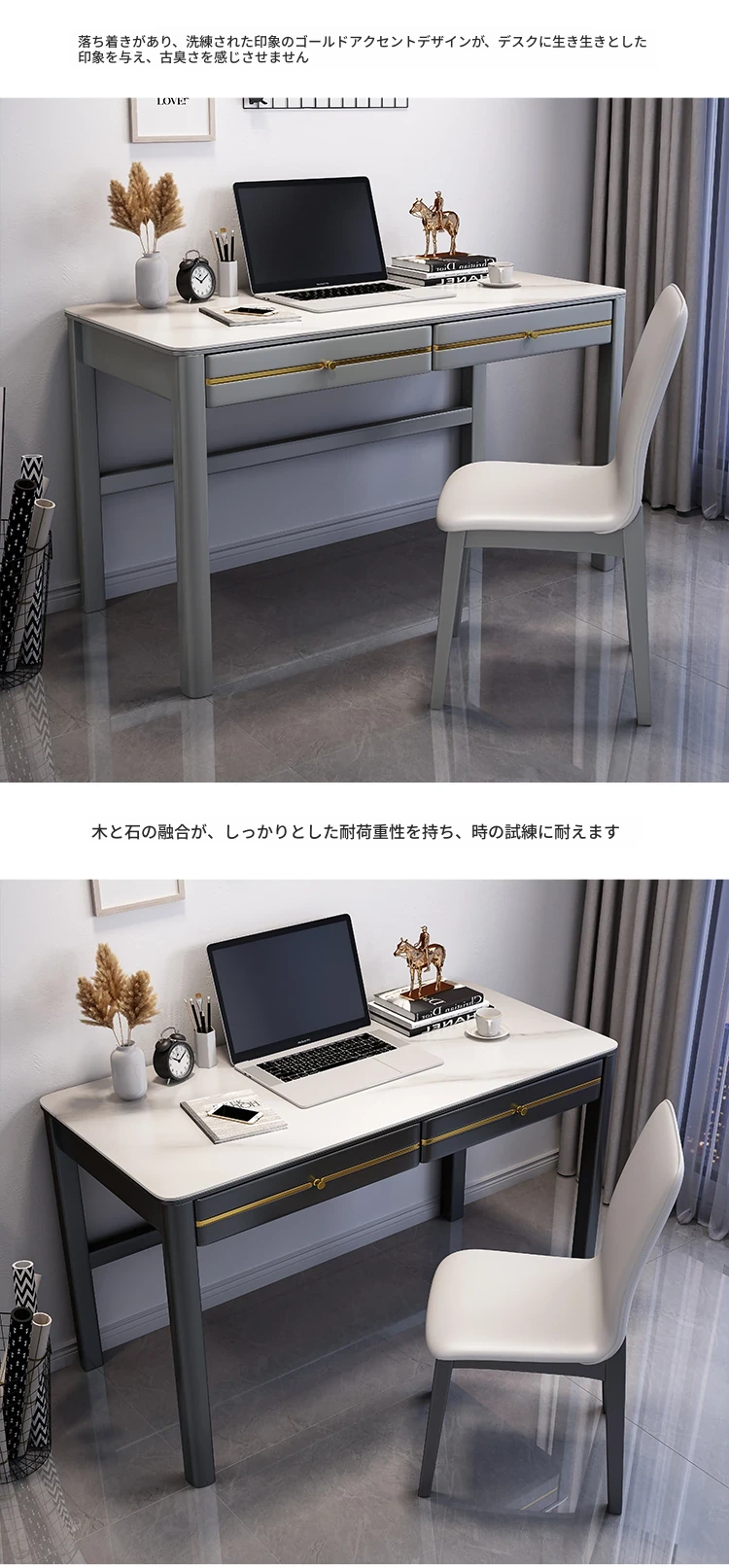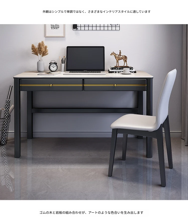 ラグジュアリーな天然木と岩板を使用したモダンデザインのシンプルデスク 〜 便利な引き出し付き、家庭やオフィス、ベッドルームにも最適、スタイリッシュで高級感漂う万能コンピューターテーブル!