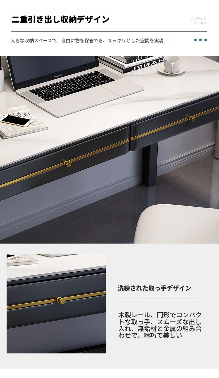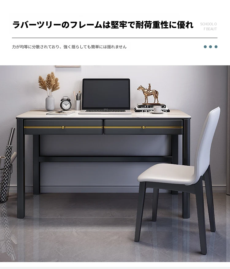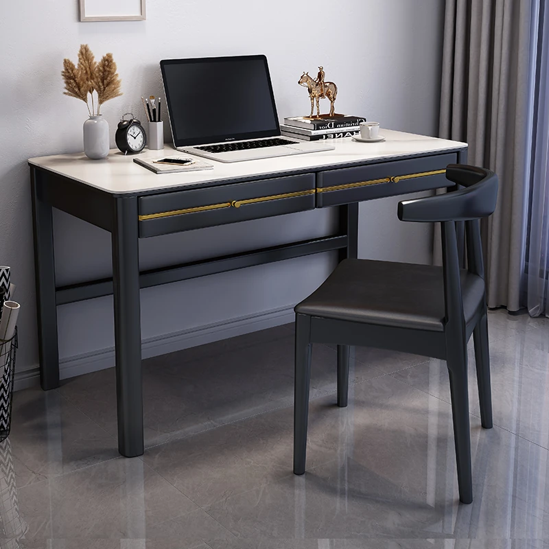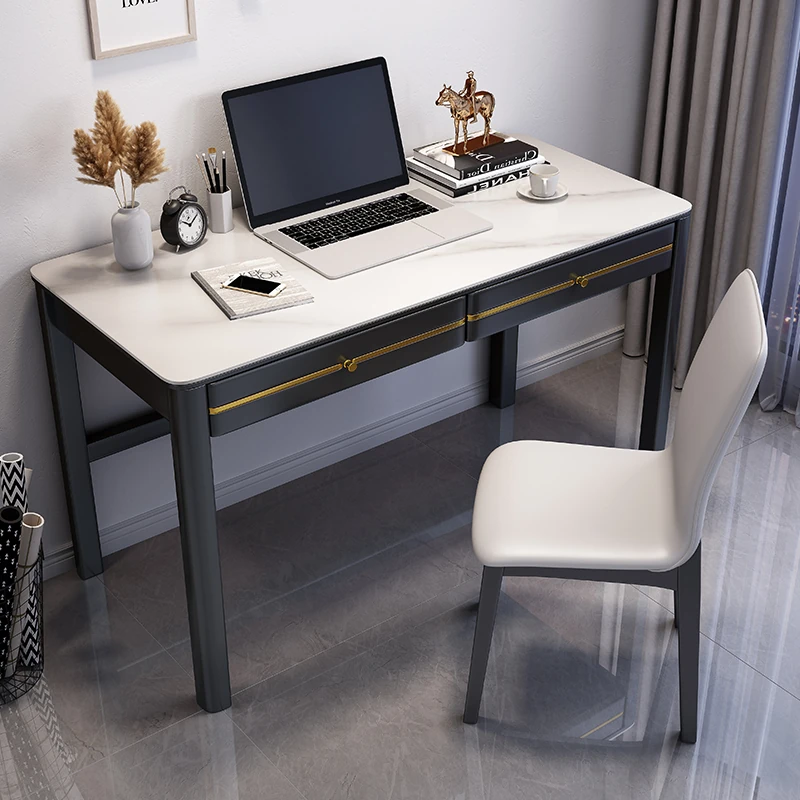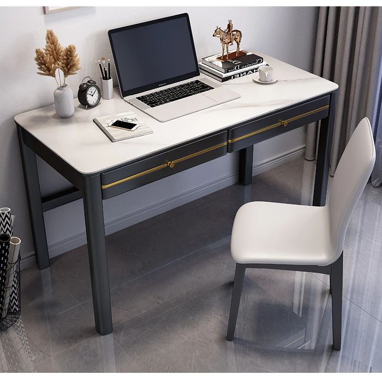 ラグジュアリーな天然木と岩板を使用したモダンデザインのシンプルデスク 〜 便利な引き出し付き、家庭やオフィス、ベッドルームにも最適、スタイリッシュで高級感漂う万能コンピューターテーブル!
