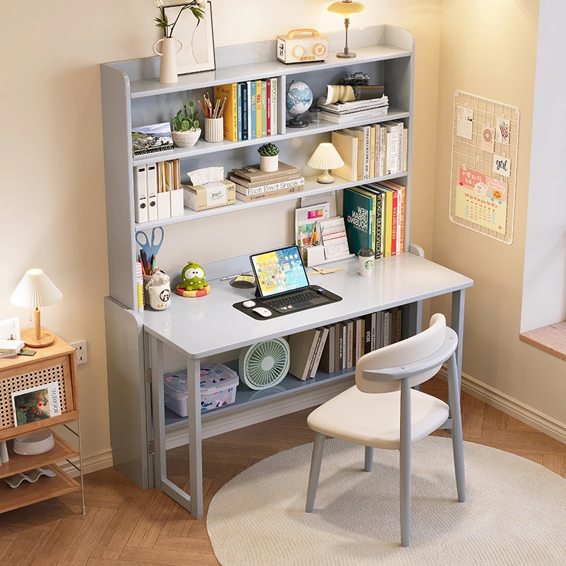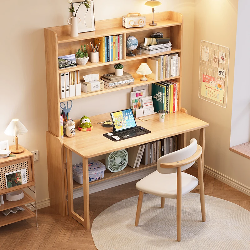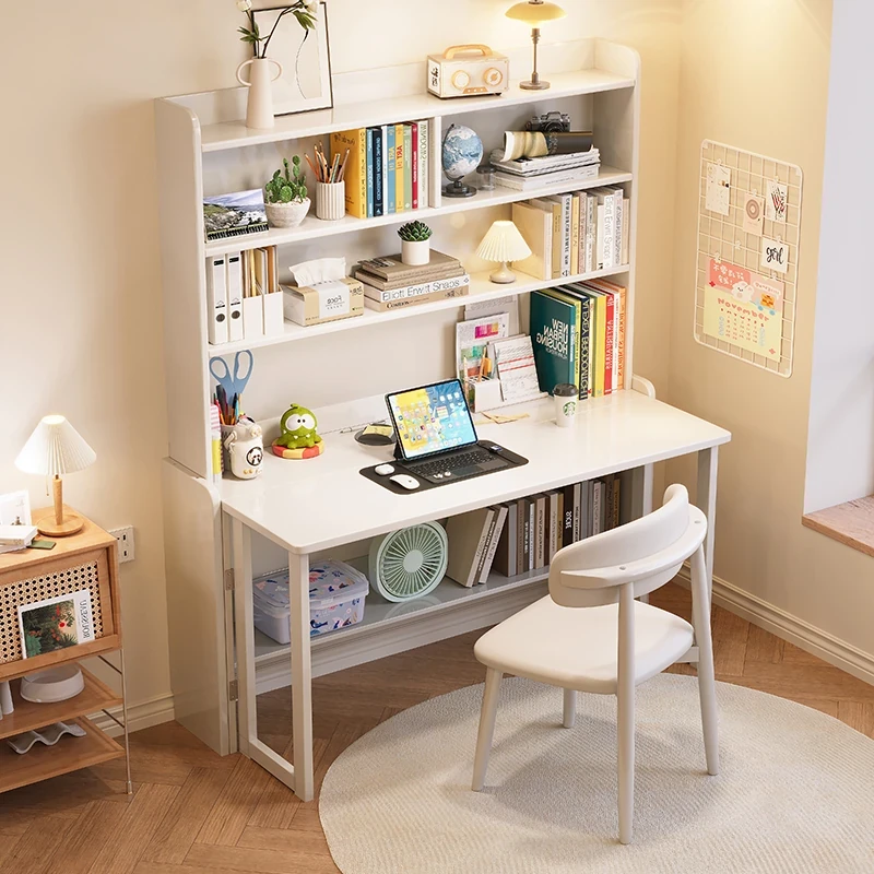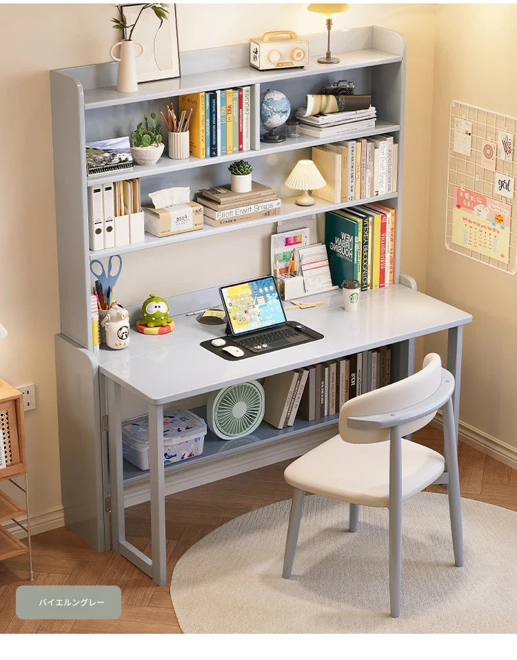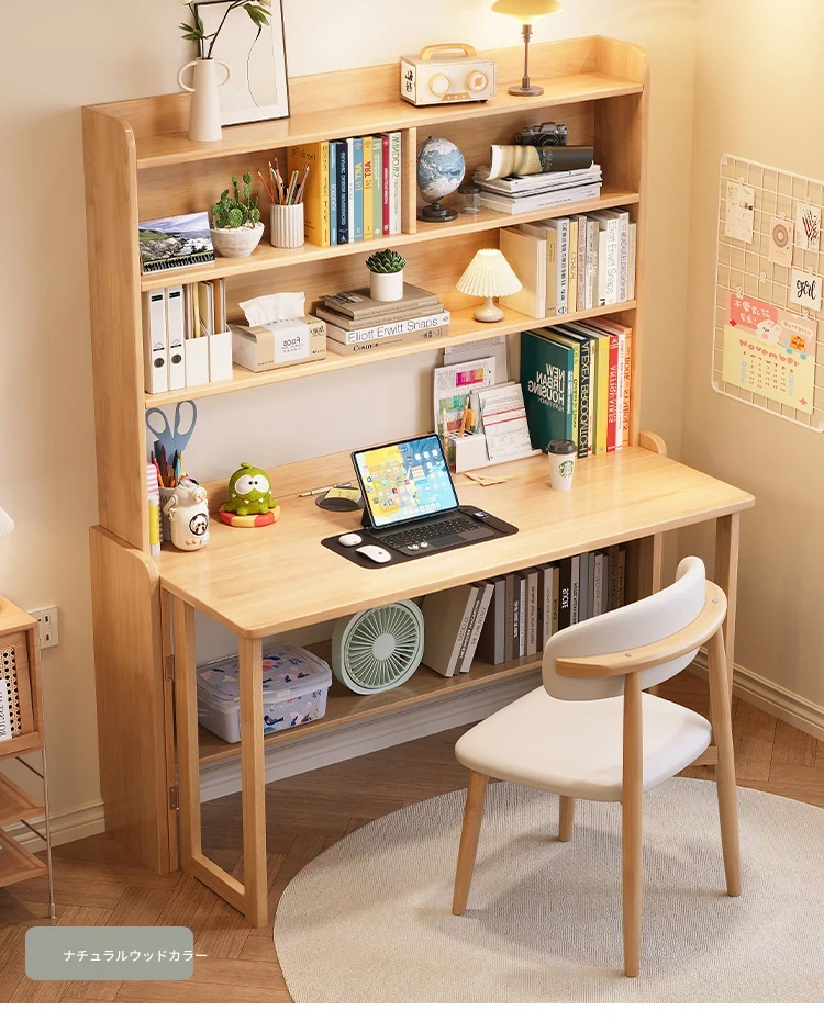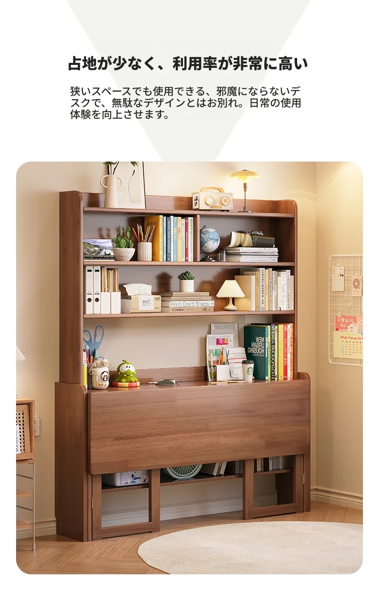 省スペース!折りたたみ式デスク&ブックシェルフ一体型学習机 ─ 子供部屋にもぴったり!小型で伸縮自在、家庭用PCデスクとしても最適