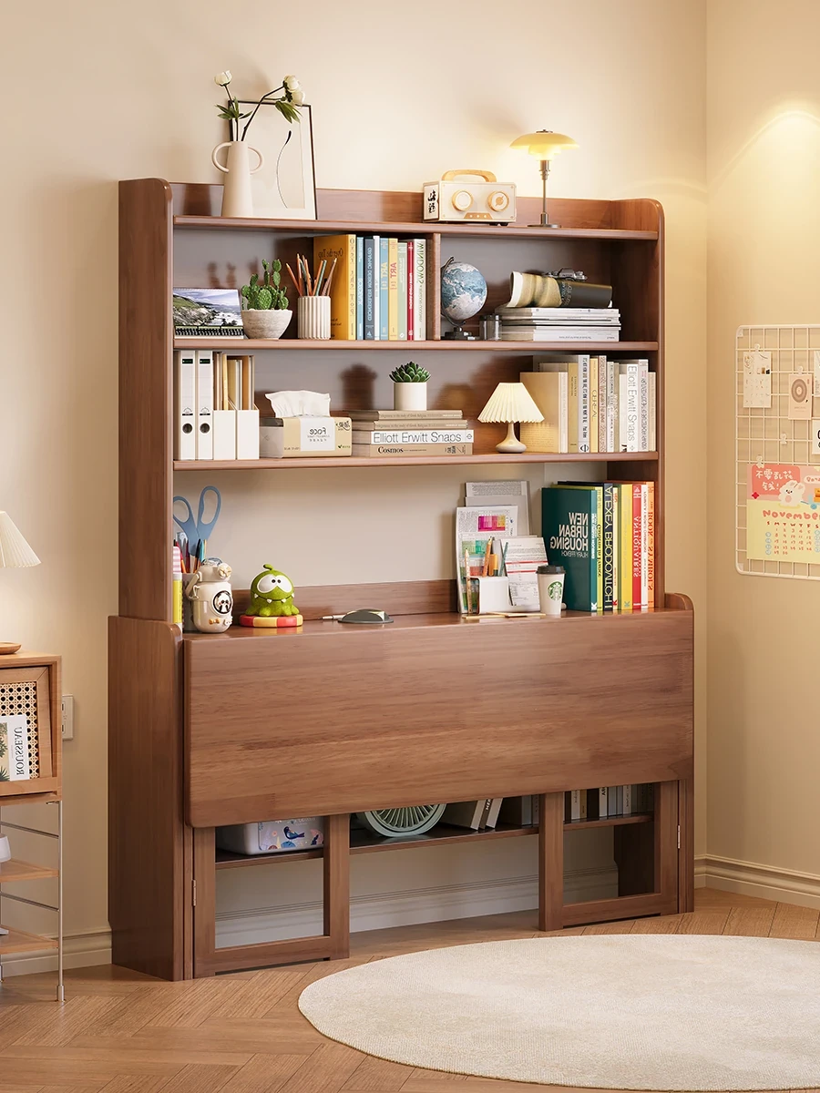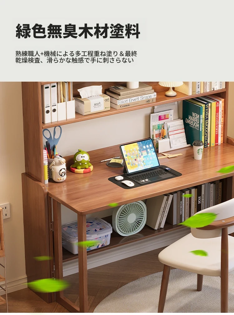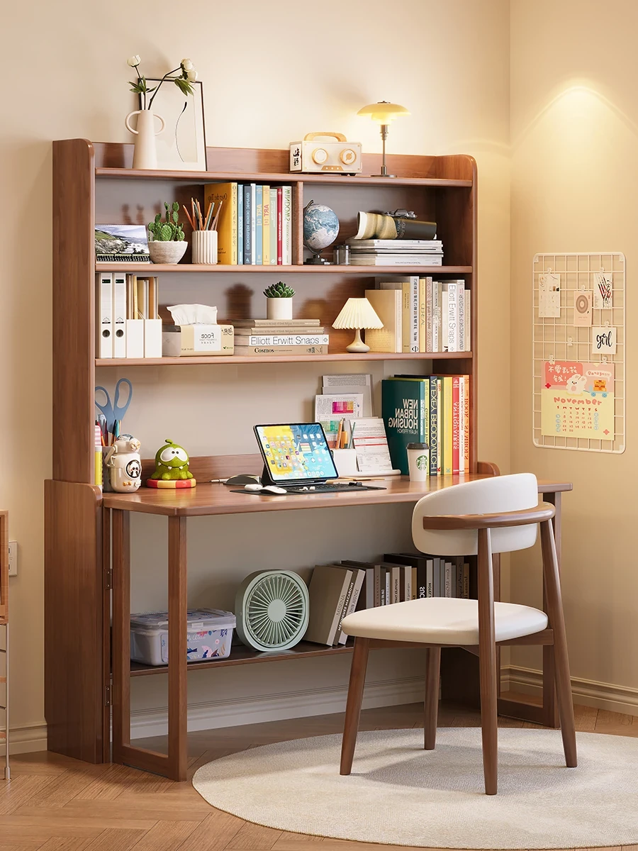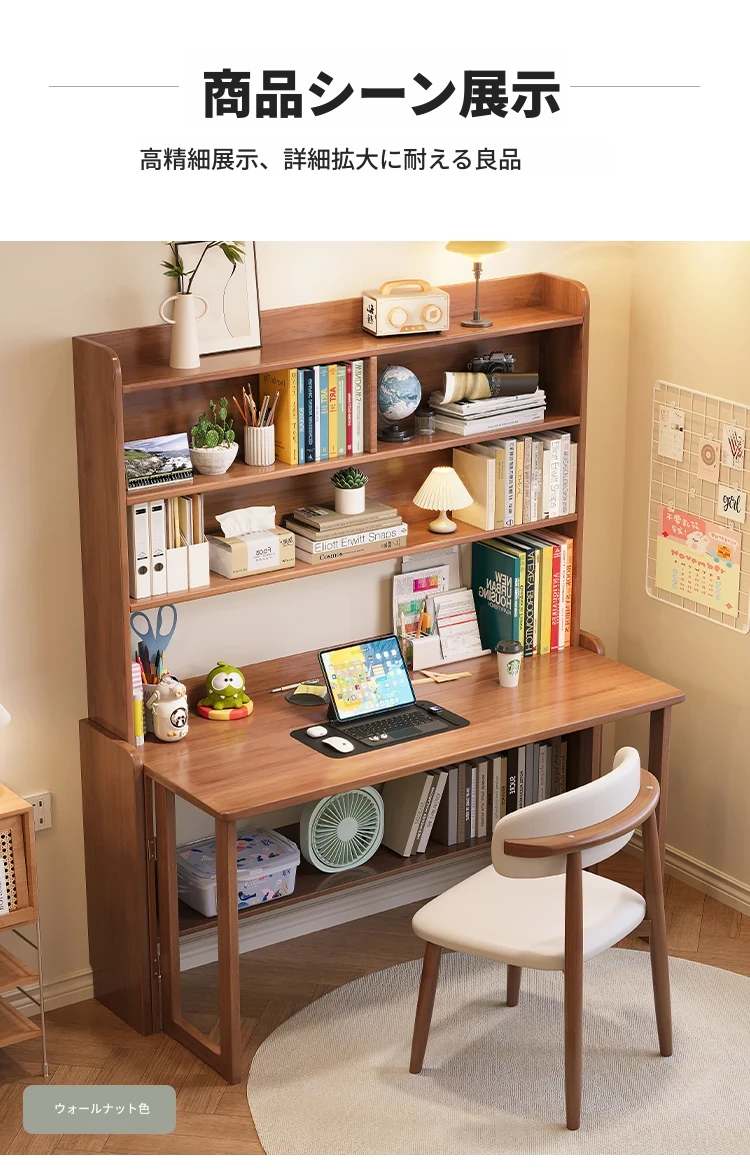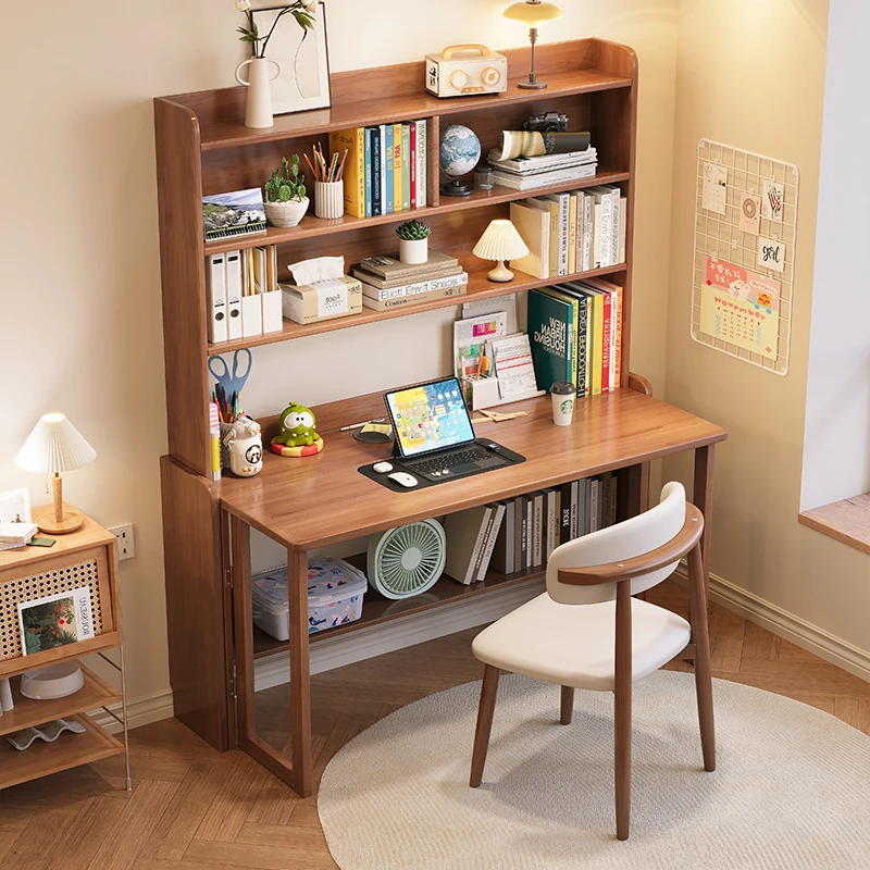 省スペース!折りたたみ式デスク&ブックシェルフ一体型学習机 ─ 子供部屋にもぴったり!小型で伸縮自在、家庭用PCデスクとしても最適