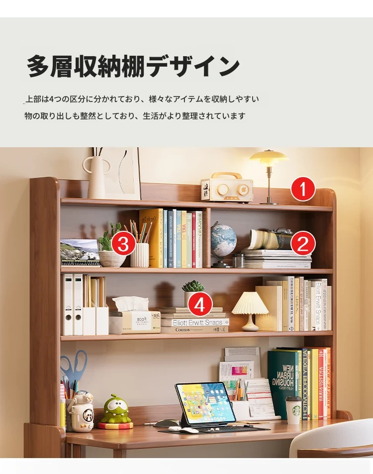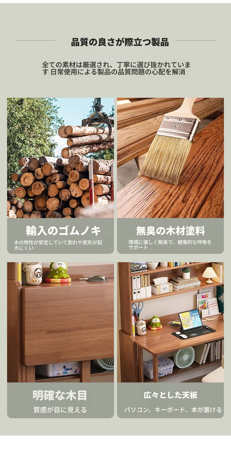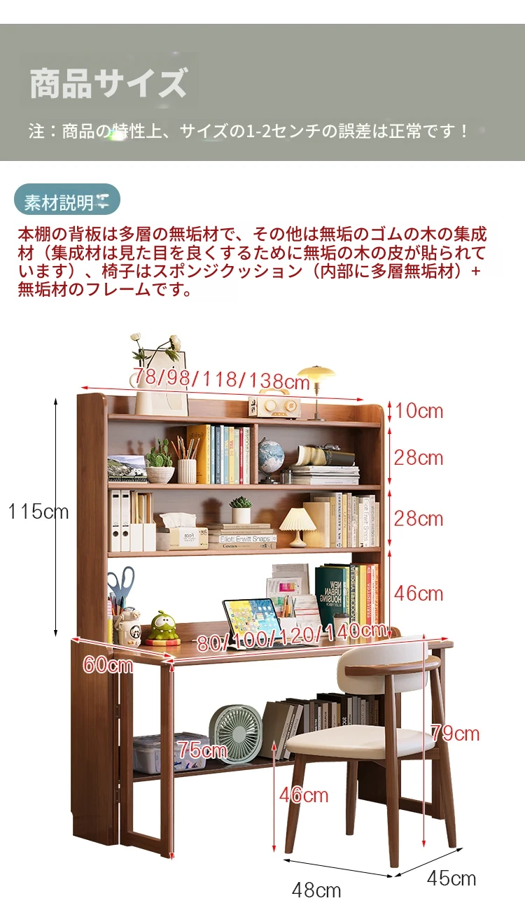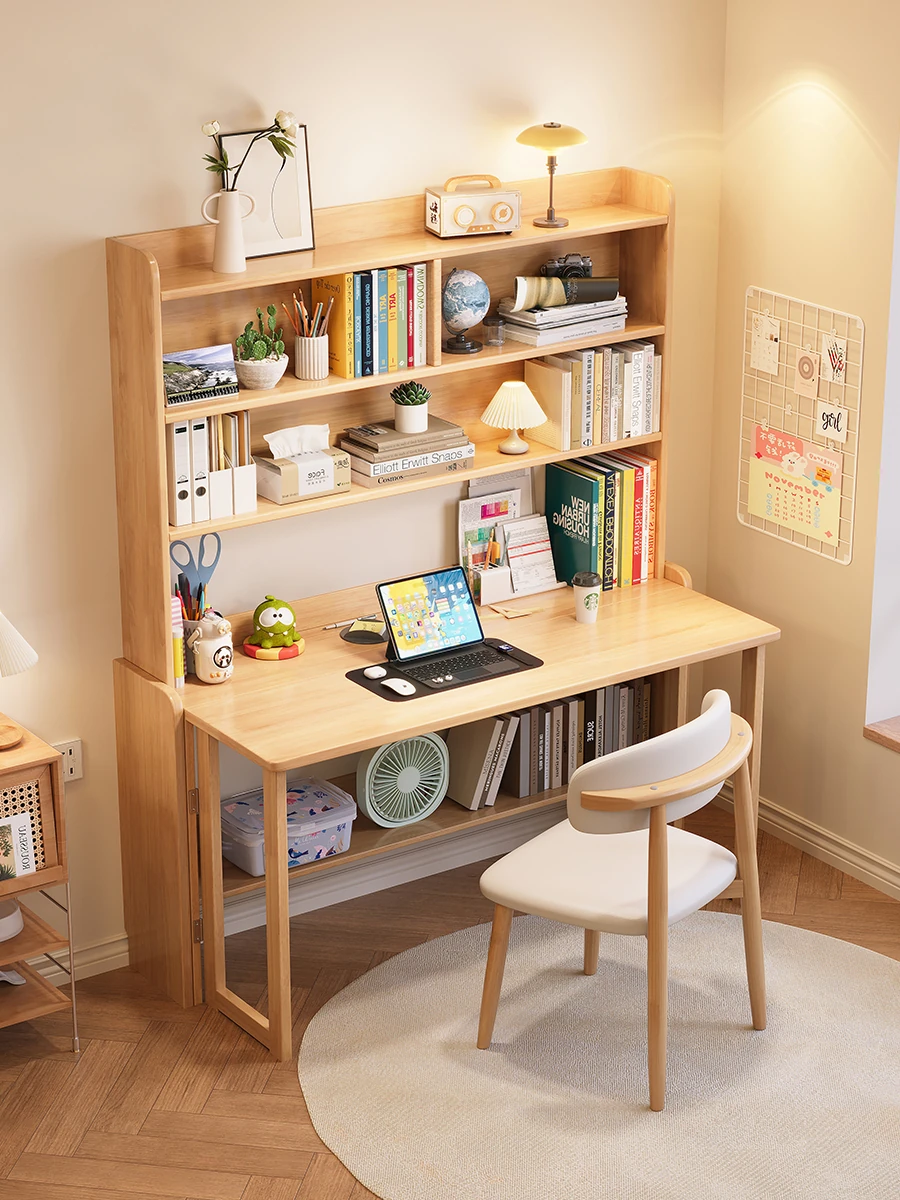 省スペース!折りたたみ式デスク&ブックシェルフ一体型学習机 ─ 子供部屋にもぴったり!小型で伸縮自在、家庭用PCデスクとしても最適