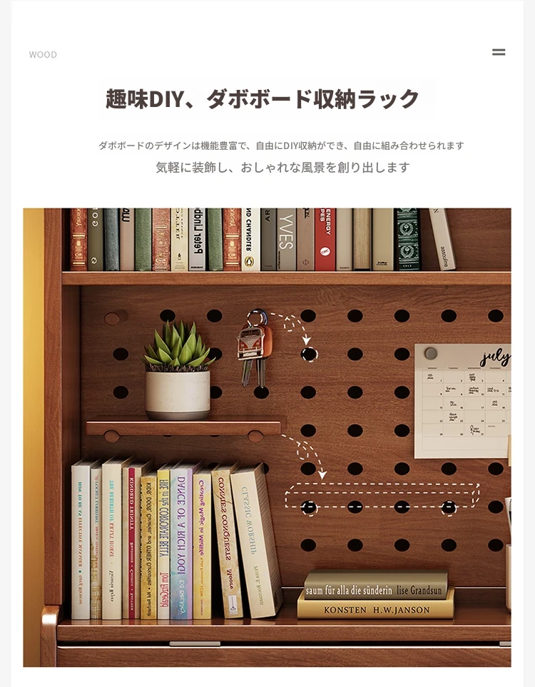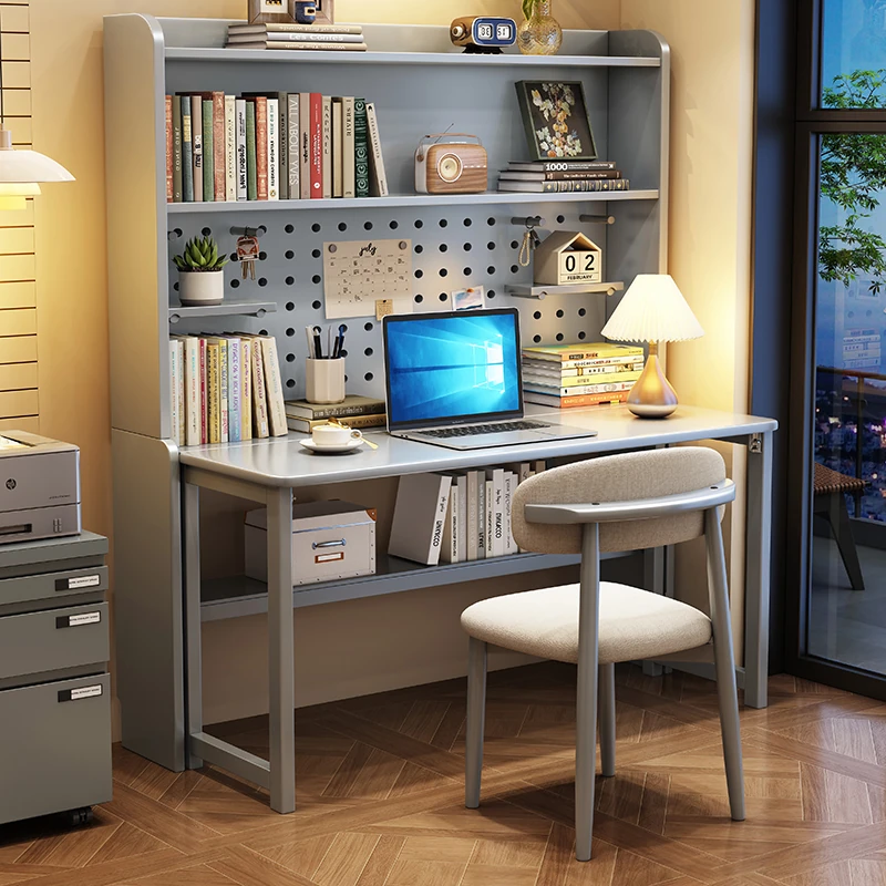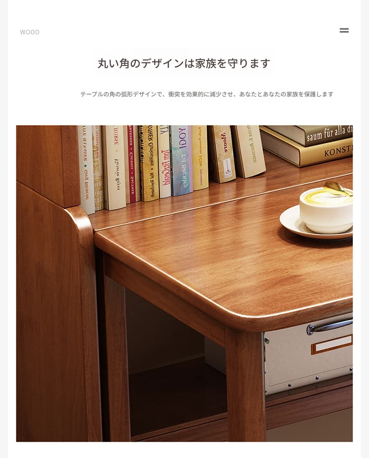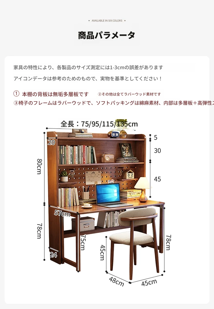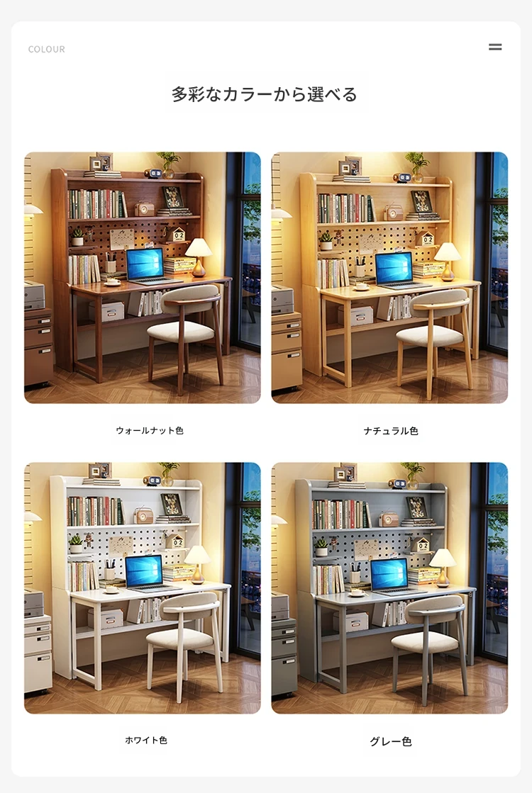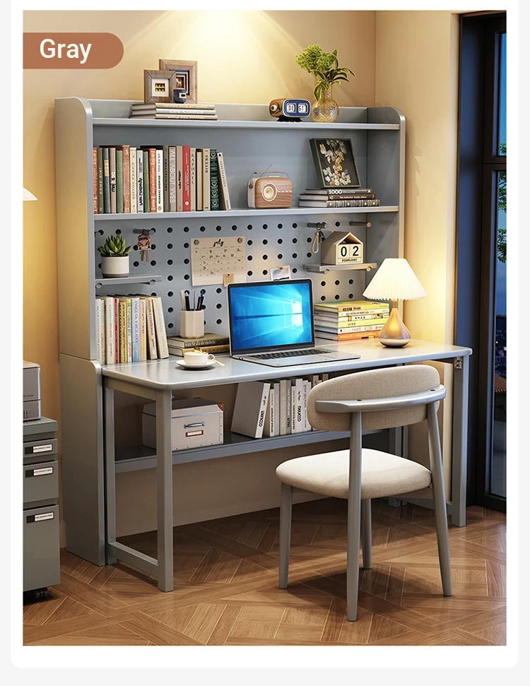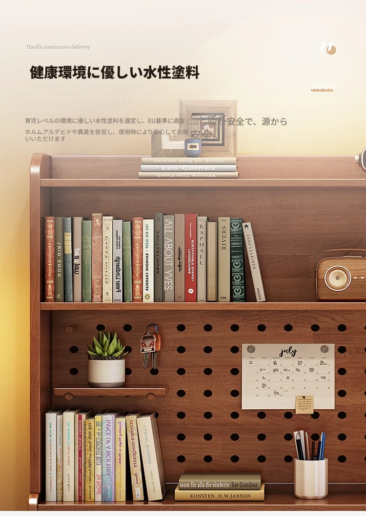 北欧スタイルの無垢材デスク&シェルフ一体型、折りたたみ伸縮式パソコンデスク - 学生向け、家庭用、使いやすい穴あけボード付き学習デスク