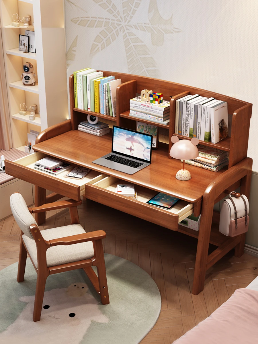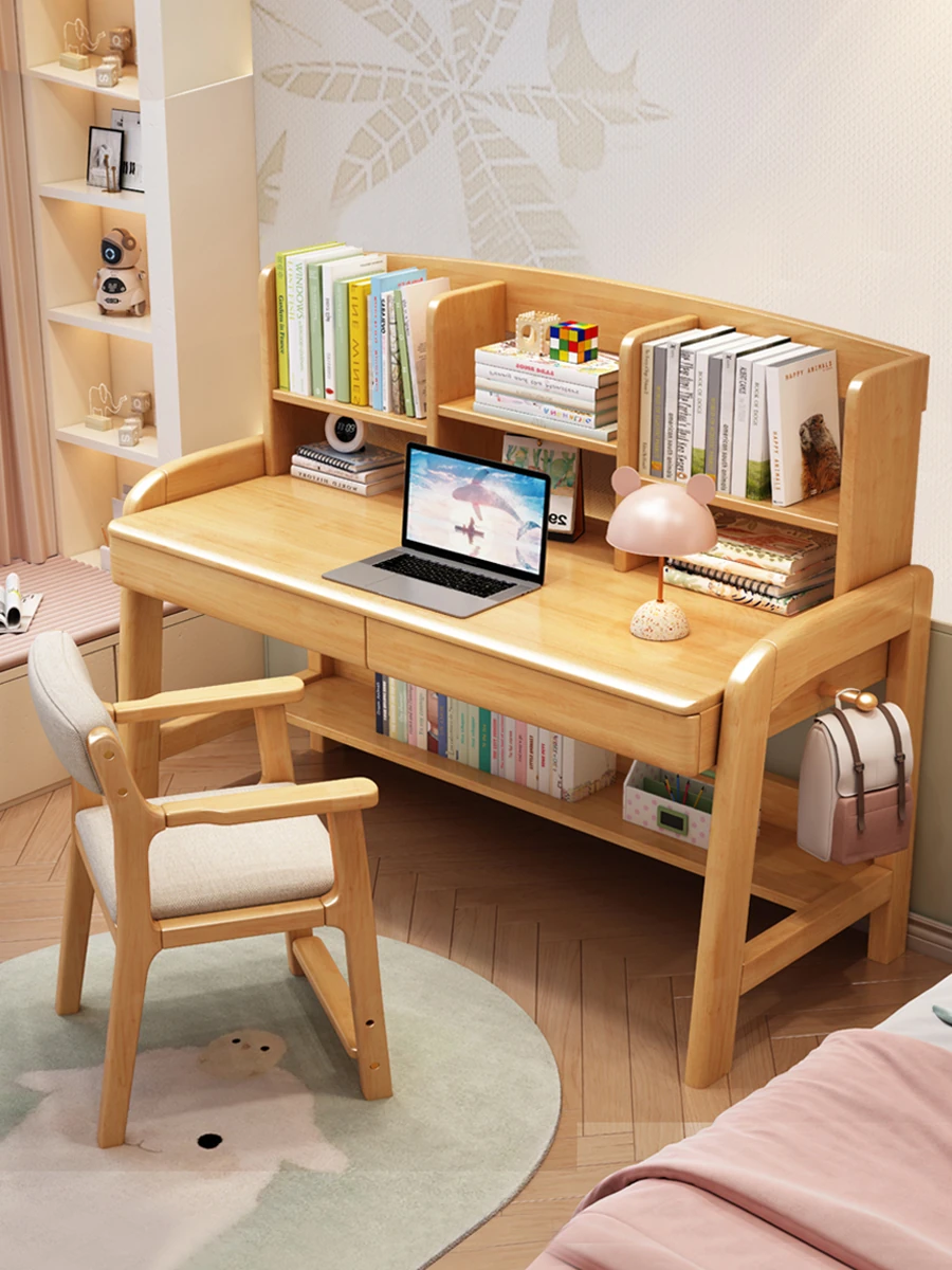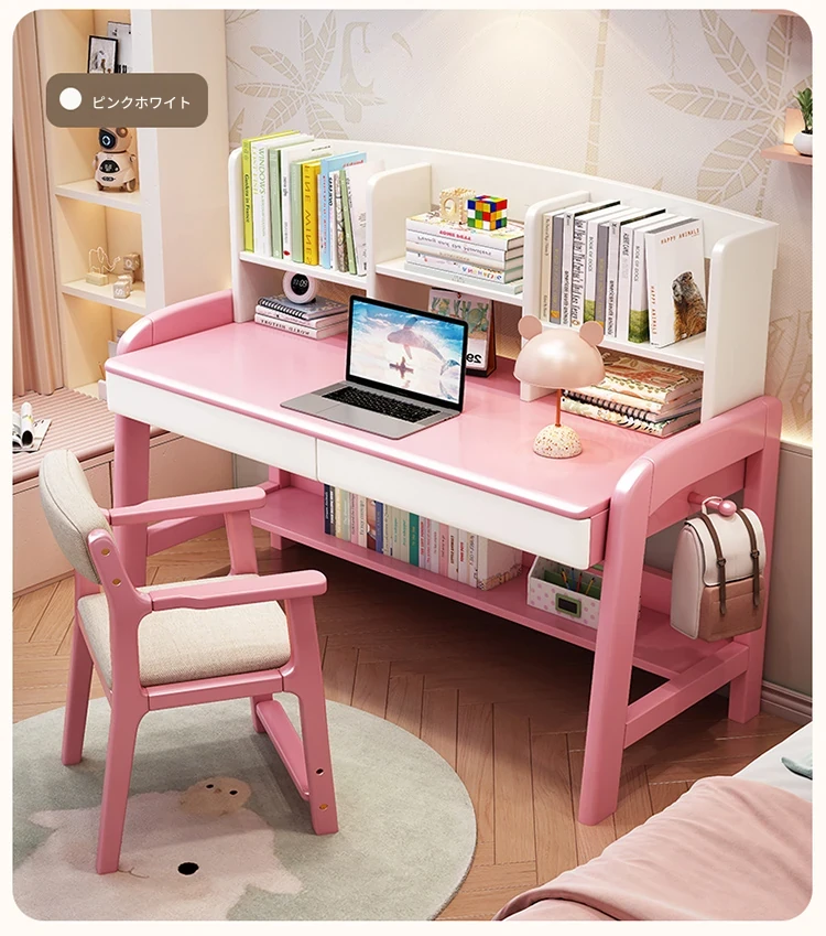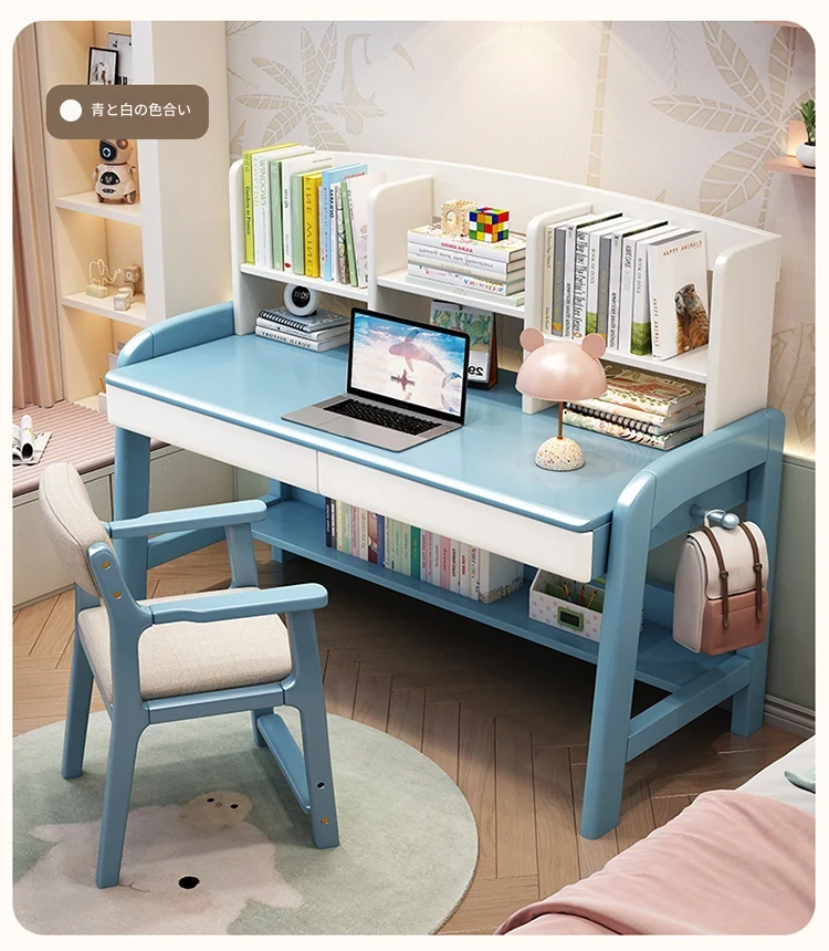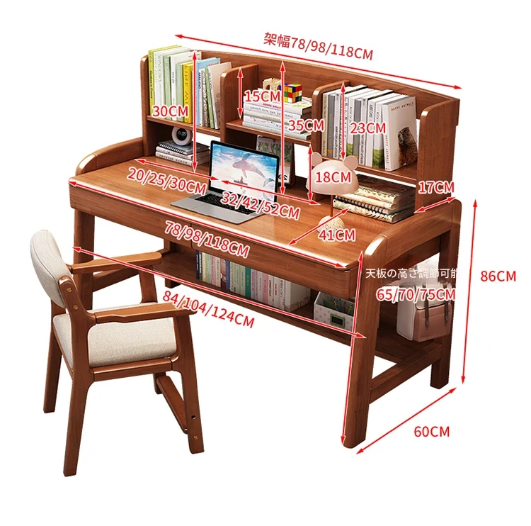天然木製多機能学習デスク - 昇降機能付きで成長をサポート!家庭やオフィスに最適なパソコンデスク、子供から高校生まで対応可能な書棚一体型デザイン