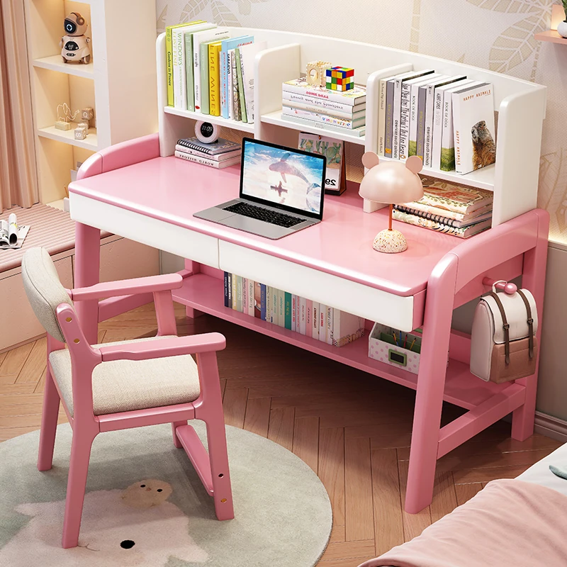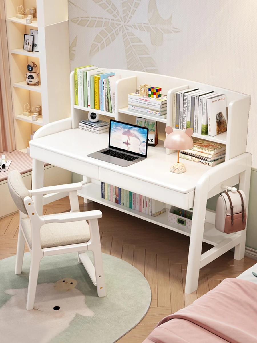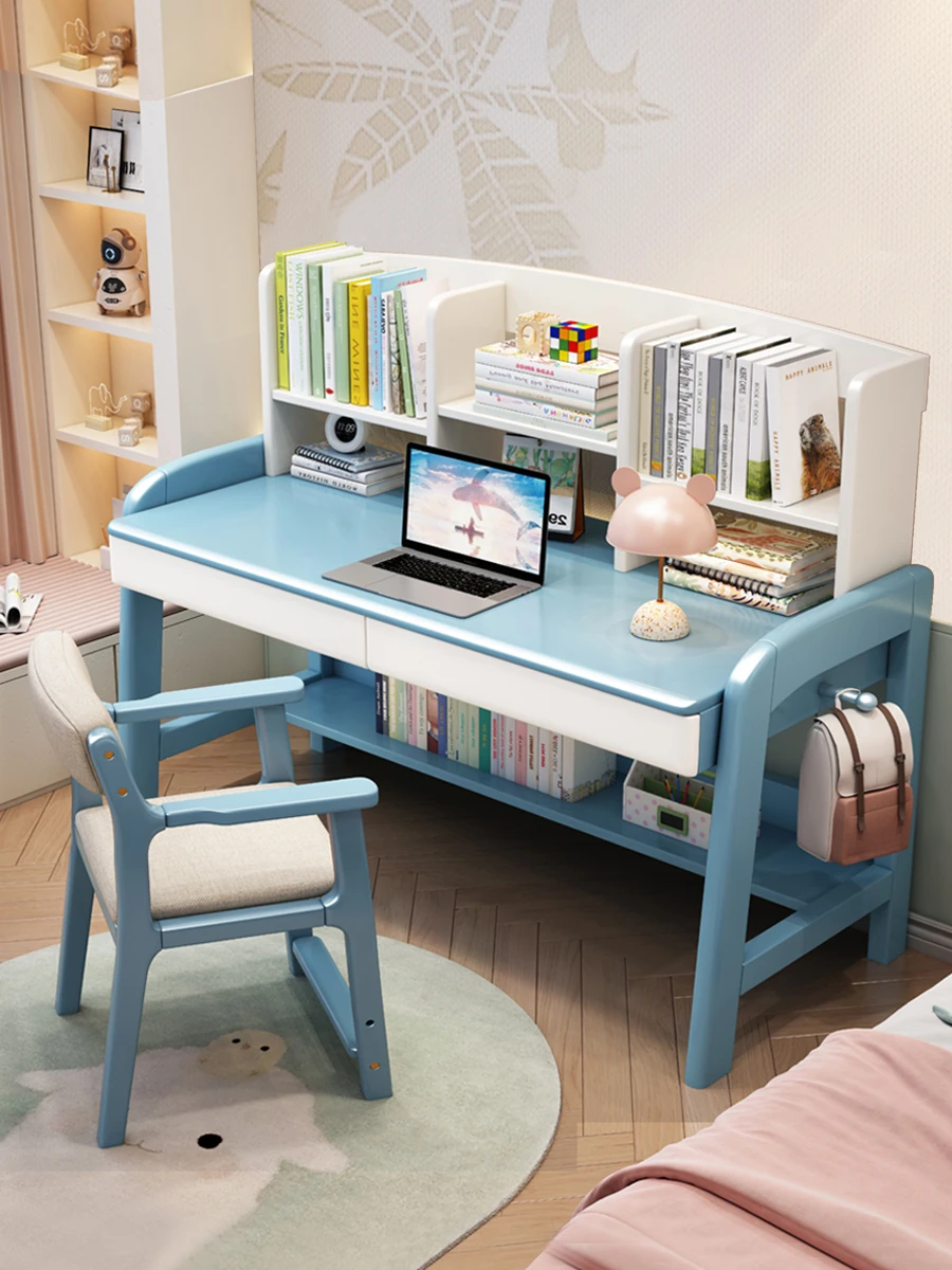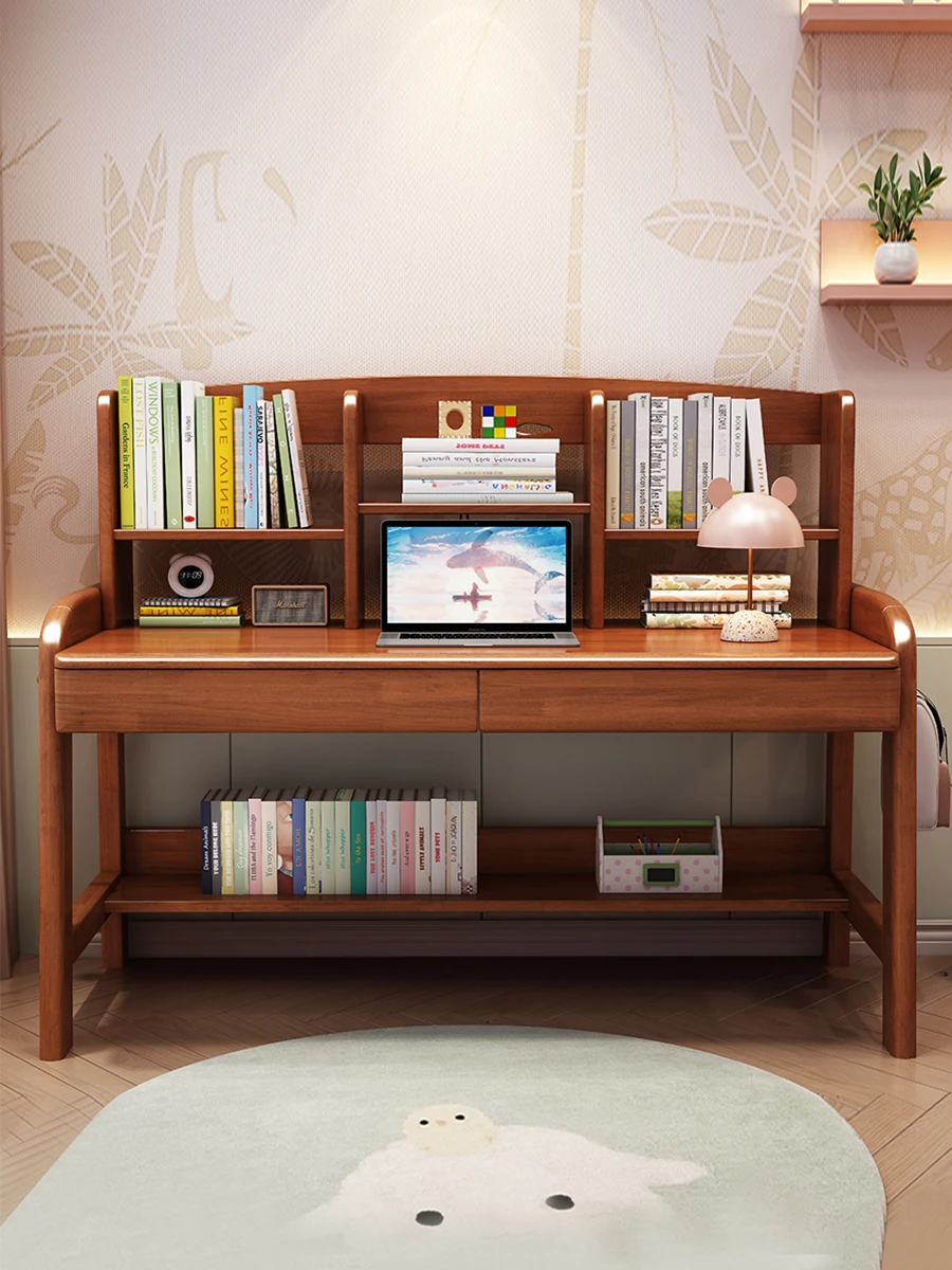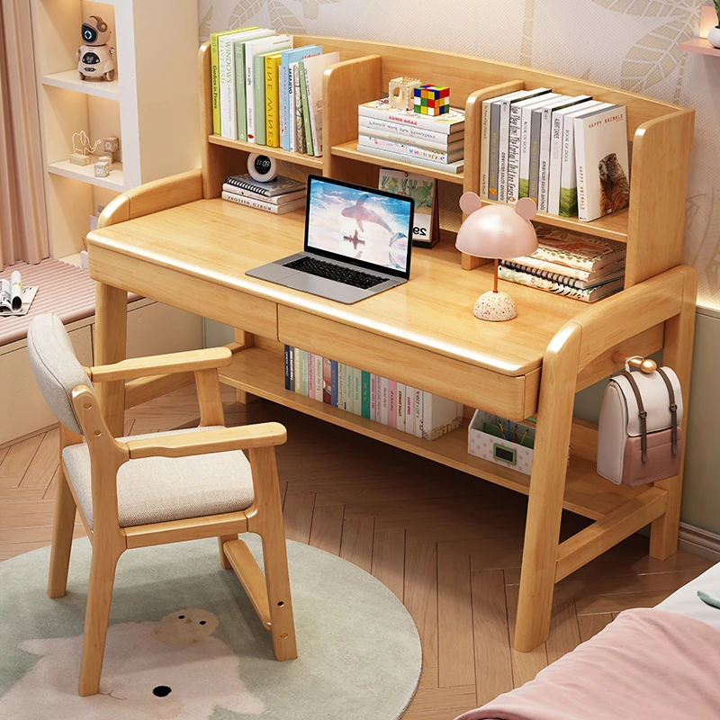 天然木製多機能学習デスク - 昇降機能付きで成長をサポート!家庭やオフィスに最適なパソコンデスク、子供から高校生まで対応可能な書棚一体型デザイン