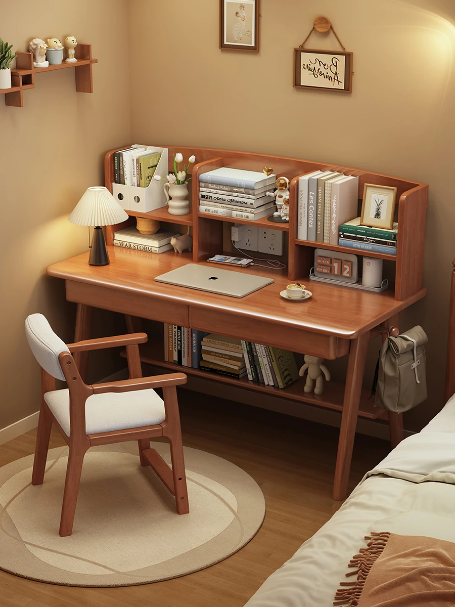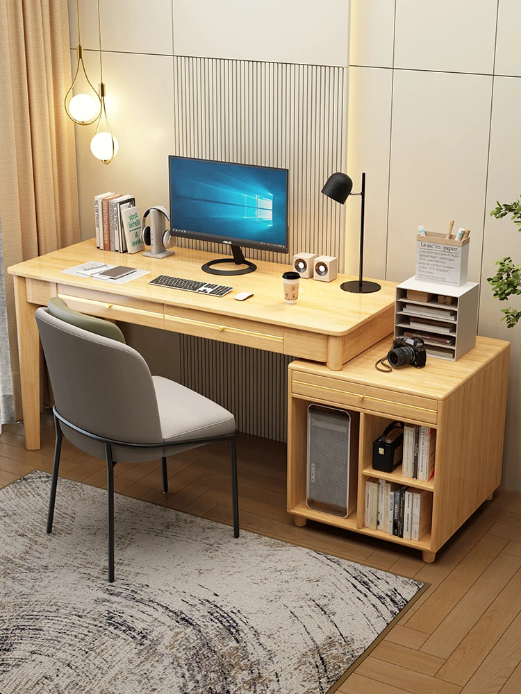 【魅力大特価】多機能一体型天然木製デスク&書棚 - 大人のための洗練されたシンプルデザイン、家庭用オフィスや勉強部屋に最適なコンピュータデスク!