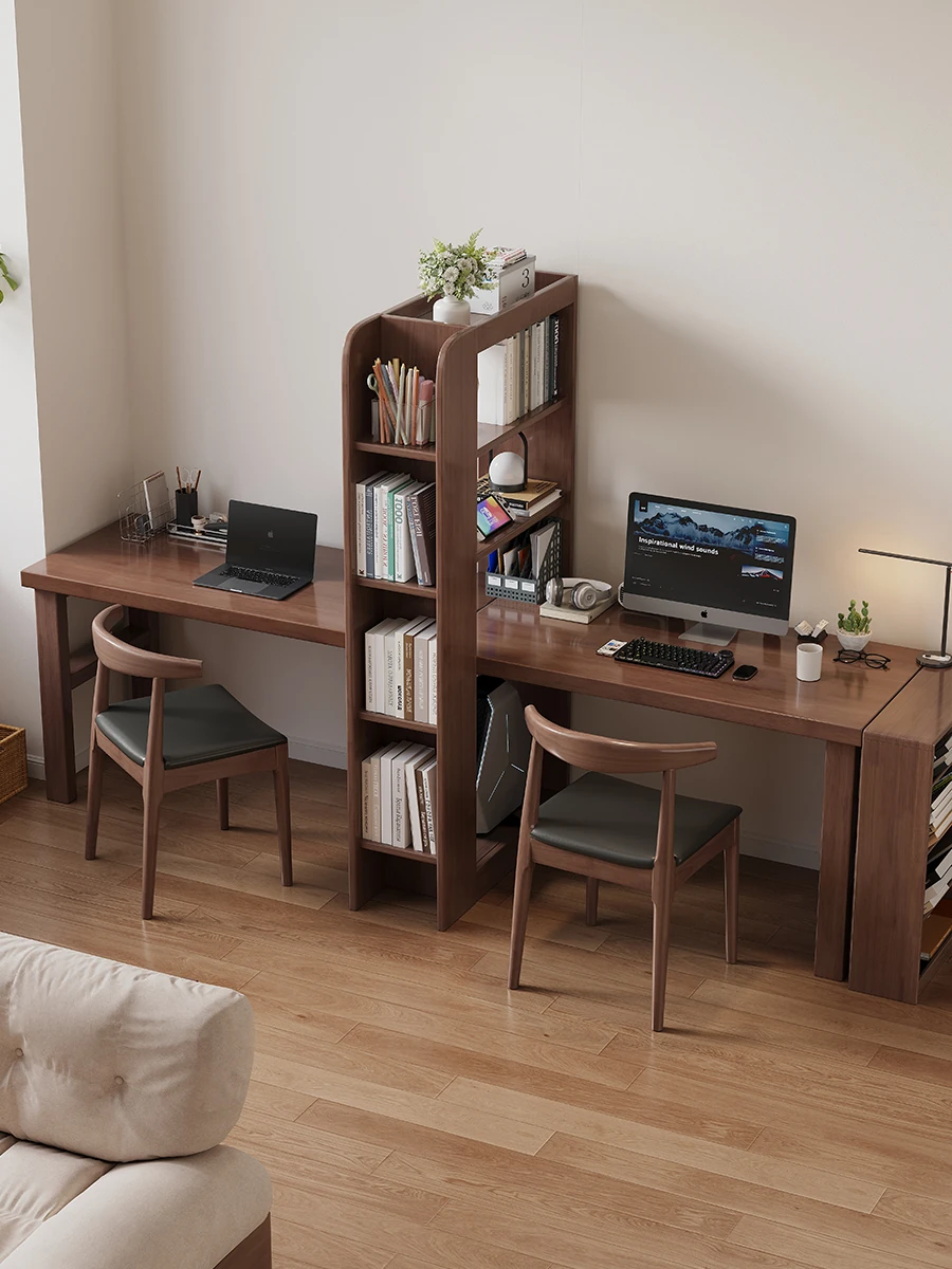 【魅力登場!】天然木材使用、角を有効活用したデザイン!ツインで使えるオールインワン学習デスクセット 本棚コンビネーション 学生用ワイドパソコンデスク