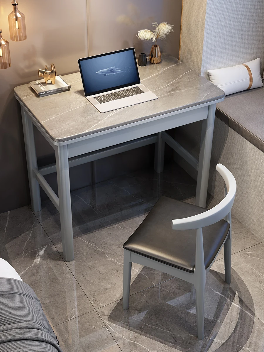 ラグジュアリー感のあるスリムなデザイン!岩板製コンパクトデスク:家庭用勉強机・小型モダン書斎机・ノートPCにも最適なスタイリッシュなワークデスク