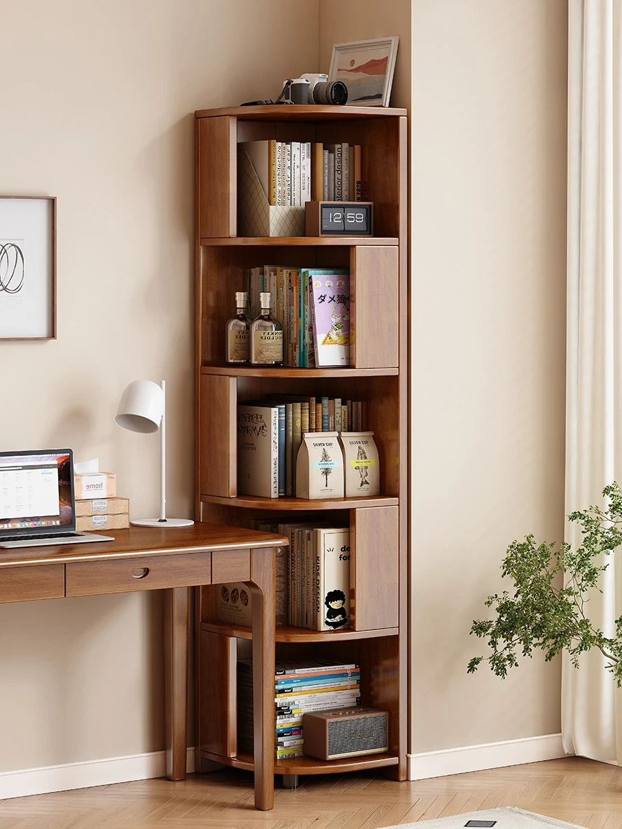 全実木製コーナーシェルフ - 自宅のリビングに最適な多層収納!省スペースで実用性抜群の落地型三角キャビネット