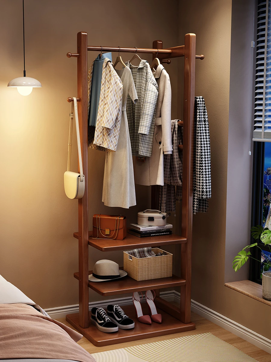 本格派!温かみある天然木製ポールハンガー - 寮や寝室にピッタリなコンパクト収納!服やバッグをおしゃれに整理整頓。